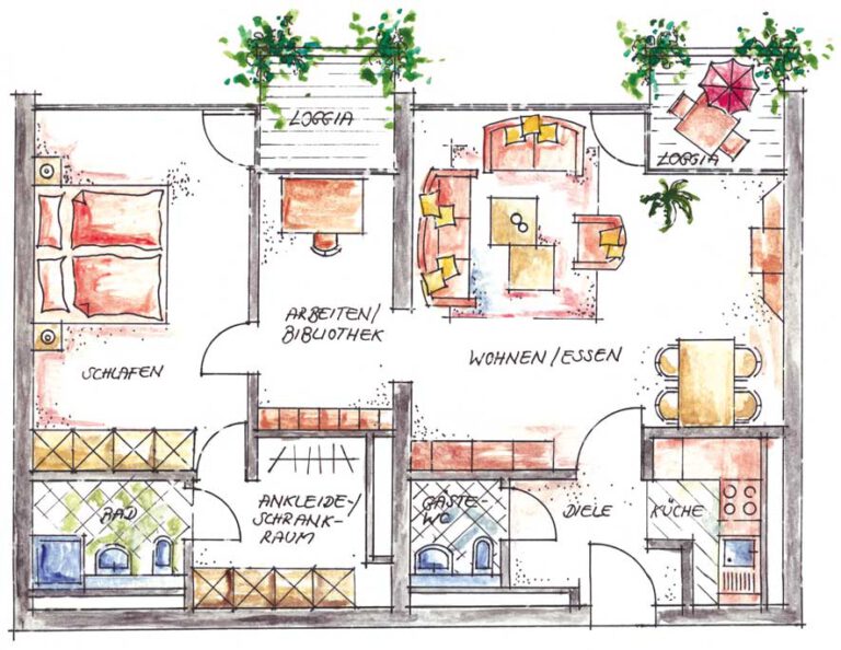 Hier sehen Sie die typischen Zuschnitte von Wohnungen im Rosenpark Laurensberg und Beispiele für die gemütliche Gestaltung Ihres neuen Zuhauses.